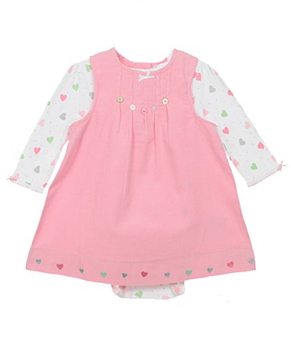 Give your little lady a soft and dainty look with this Little Me outfit! The corduroy A-line dress has buttons in back, pleating and button accents on the chest, and embroidered hearts along the hem. The long-sleeved jersey bodysuit features easy-change snaps on the back and bottom, a tagless collar interior, and a dot and heart print. 100% Cotton Machine Wash Warm Made in ChinaCustomer Reviews